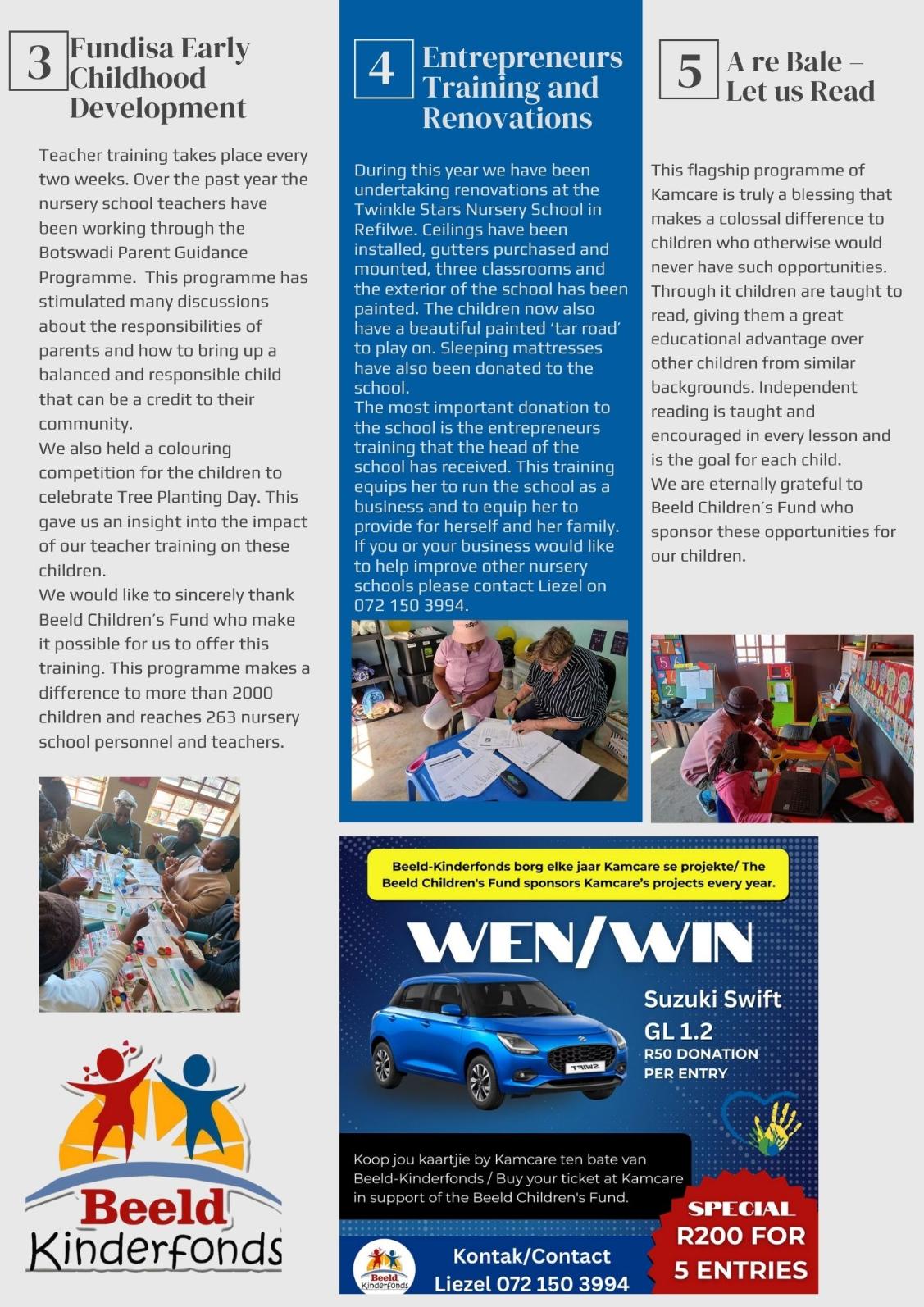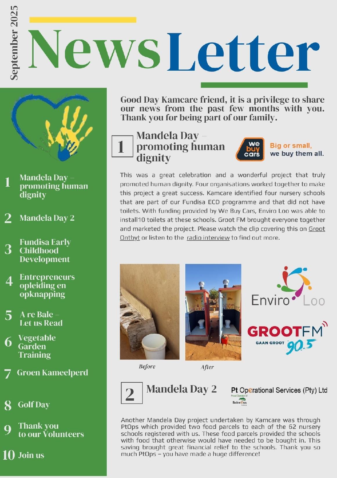 Our Newsletter is sent out every three months and contains information on what is happening at Kamcare. You can subscribe by entering your email address in the column on the right.